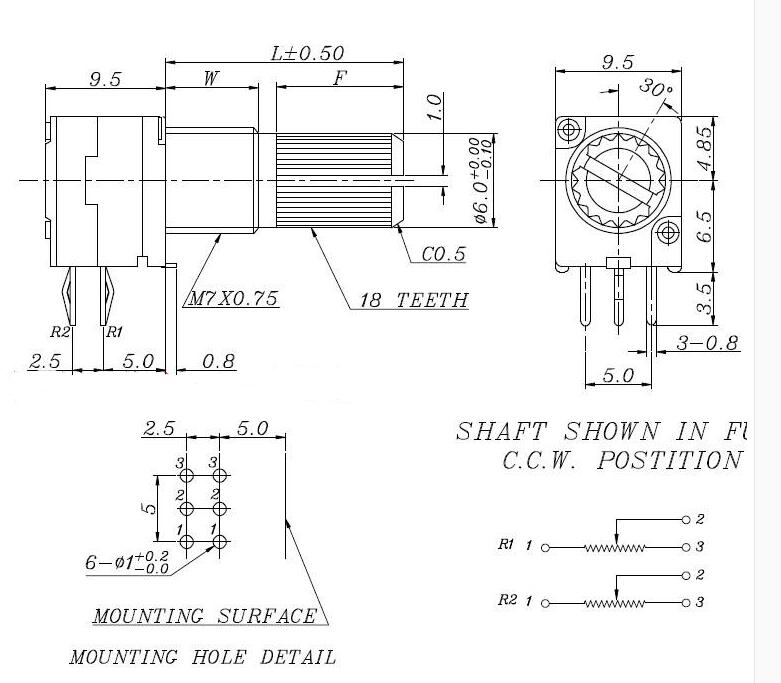 - Model Number: RV097NS / RK097NS volume potentiometer 3/5/6 / 8PIN
