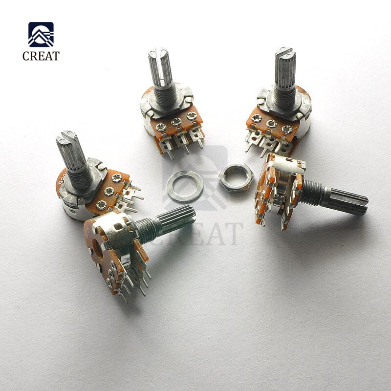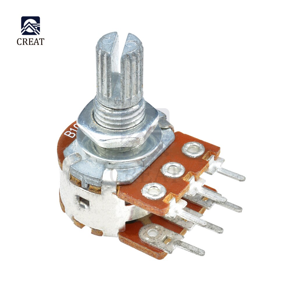 10PCS/Lot 1K 5K 10K 50K 100K 500K 1M Ohm 15mm Shaft Variable Resistors Dual Linear 6 Pin Rotary Carbon Film Taper Potentiometer