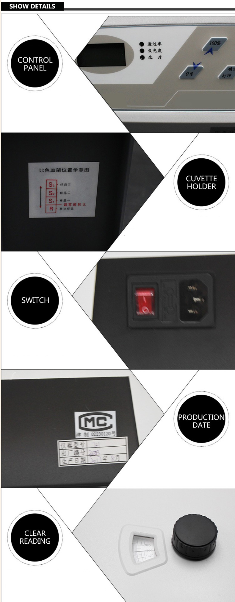 722 Visible Spectrometer Wavelength 325-1050nm UV Spectrophotometer Tester Precision UV-Vis Photometer with Analyser Cuvette Kit quantity