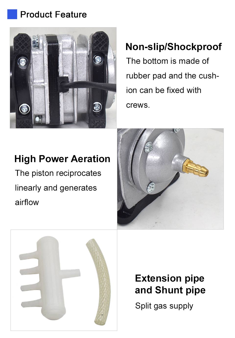 Good Performance: Pumping 60 liters of air per minute (16 gallons per minute) and rated for up to 1 year of service, this pump is the reliable solution you’ve been looking for.