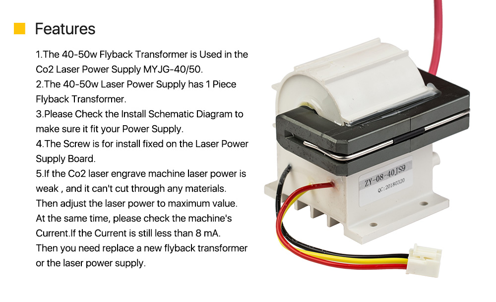 Cloudray 40-50W High Voltage Flyback Transformer Model A for CO2 Laser Power Supply PSU MYJG-40 50