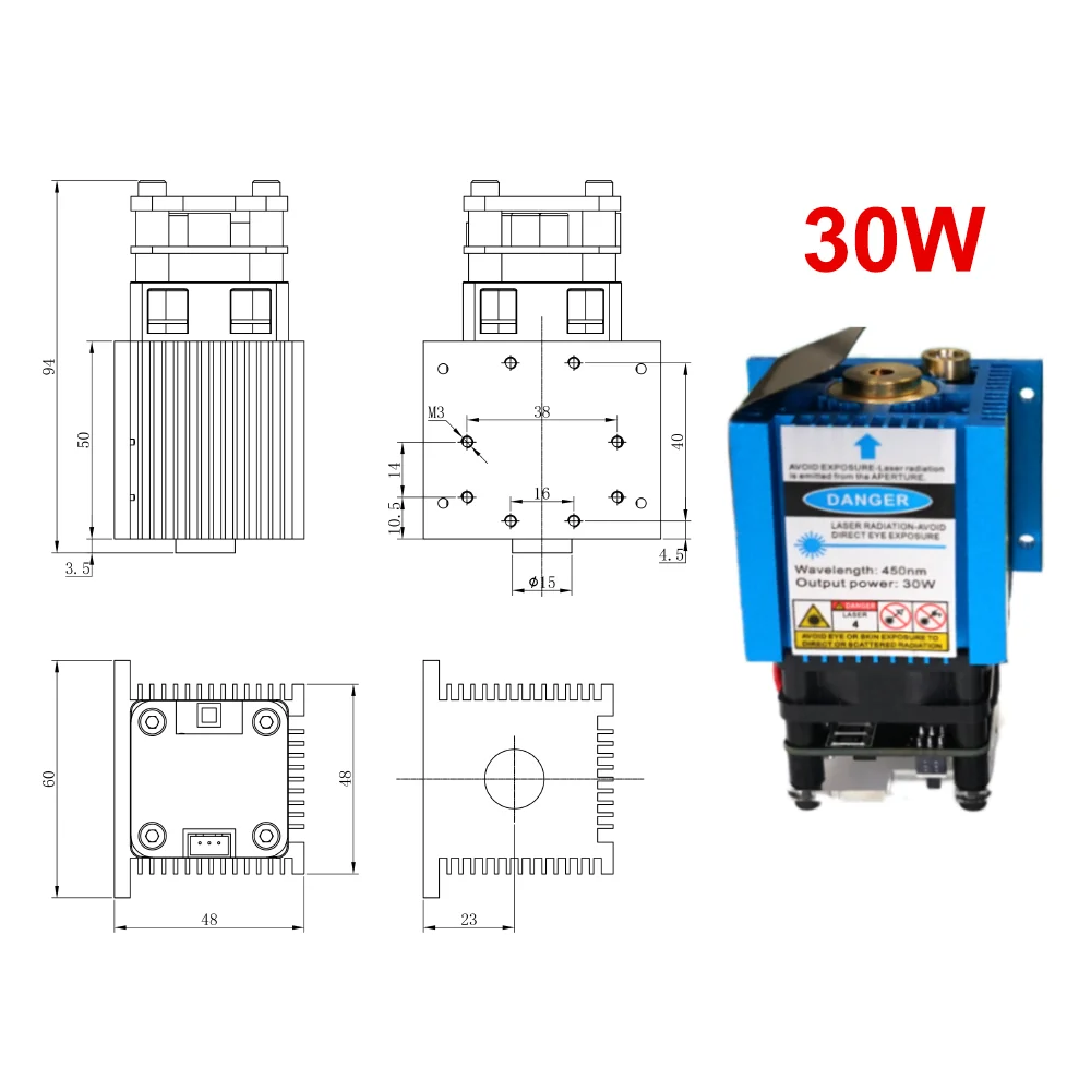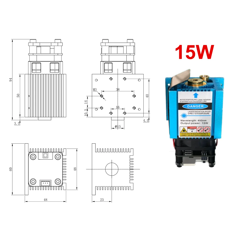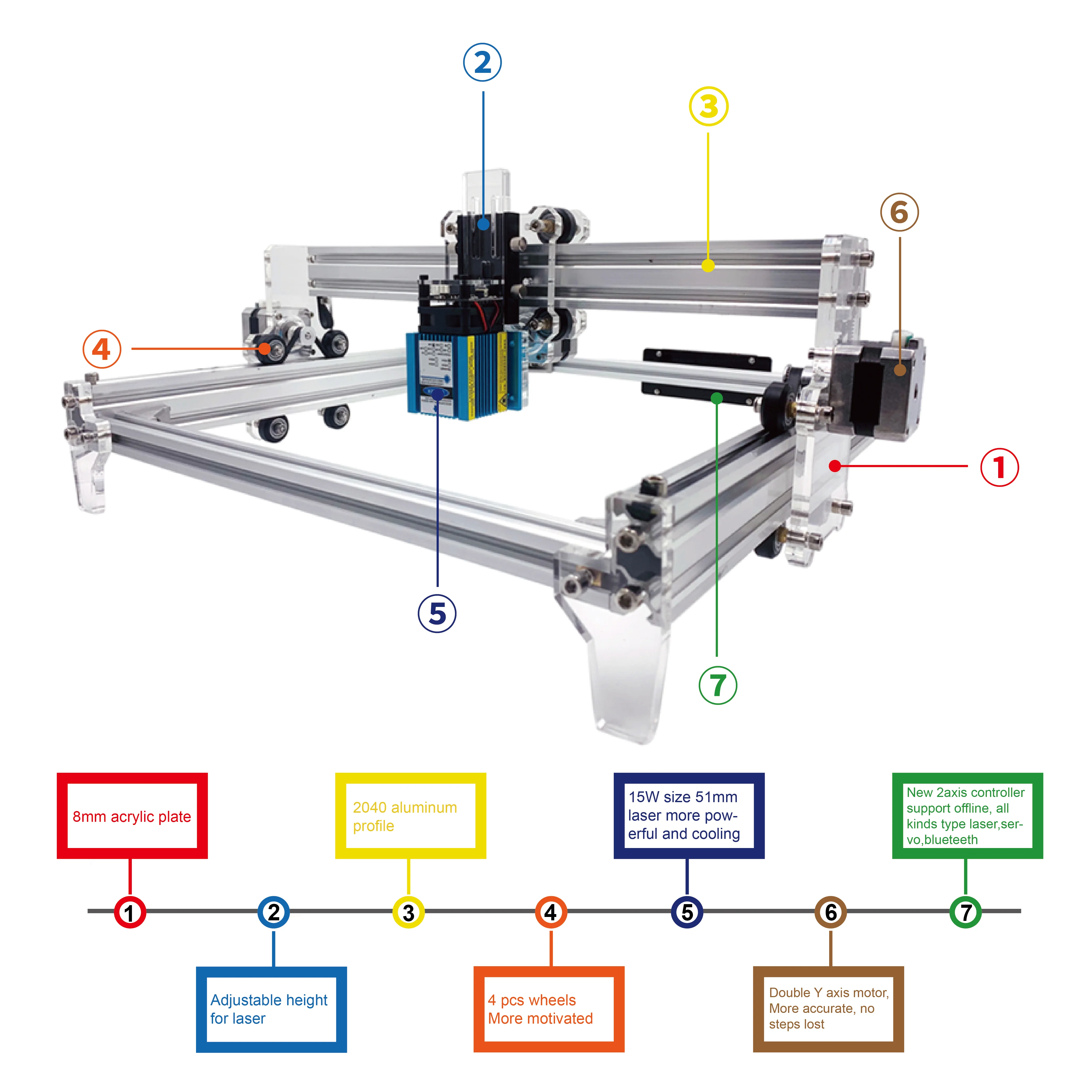 0.5W-15W: engrave all the combustible materials 15W can engrave on metal (201.304.316 stainless steel) and Glass( need use the Colored paper) 15W can cut 1-5mm plywood , cork wood and 1-3mm colorful acrylic(Transparent acrylic is not) |