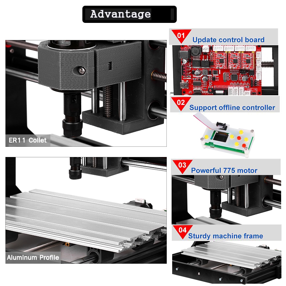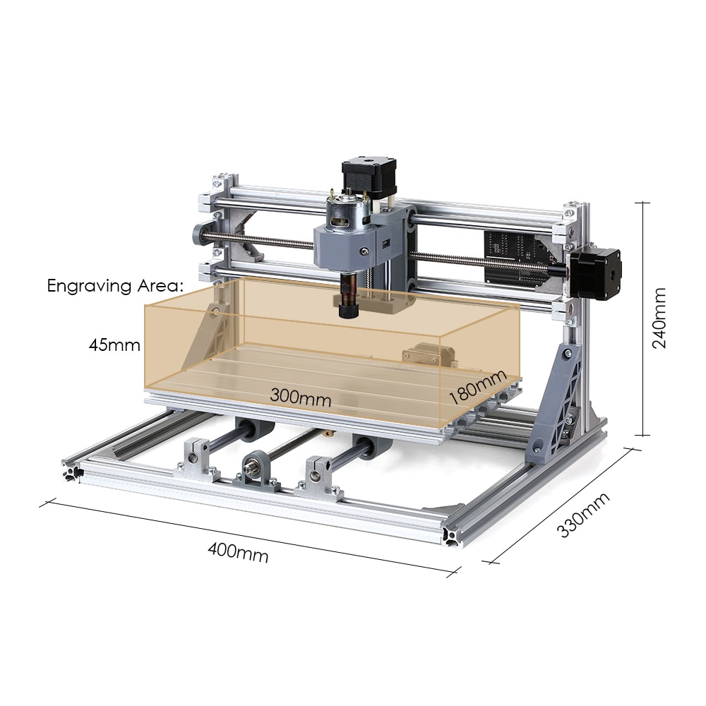 300 x 180 x 45mm large working area, Control Software: GRBL (include ER11 chuck).