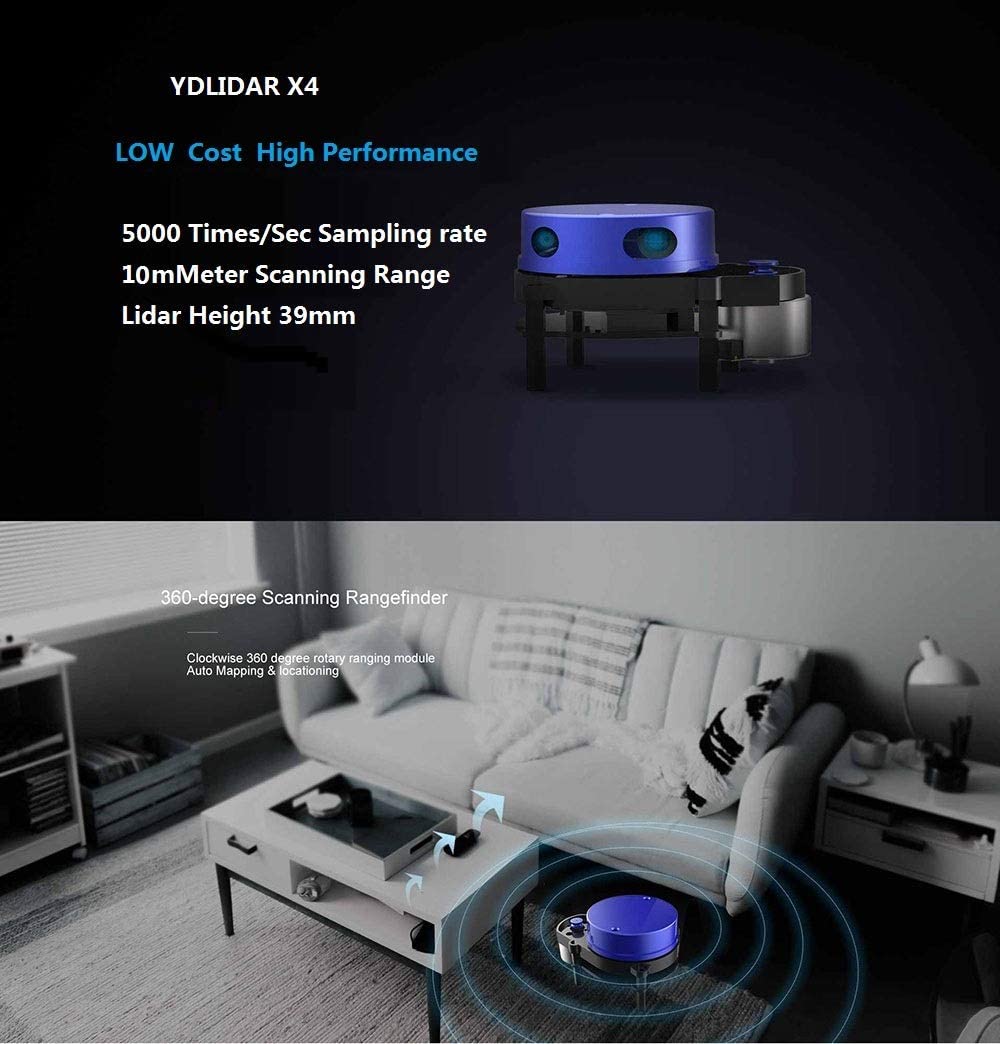 EAI YDLIDAR X4 360 Degree 2D Laser Range Lidar Sensor 10M Scanner Scanning Radius Ranging Sensor Module with UART Communication Interface