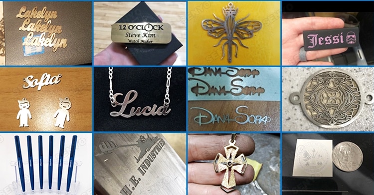 brass, aluminum ( iPhone, iPad ), iron, gold, silver, titanium and other metals. Laser marking plastic, ABS, acrylic,