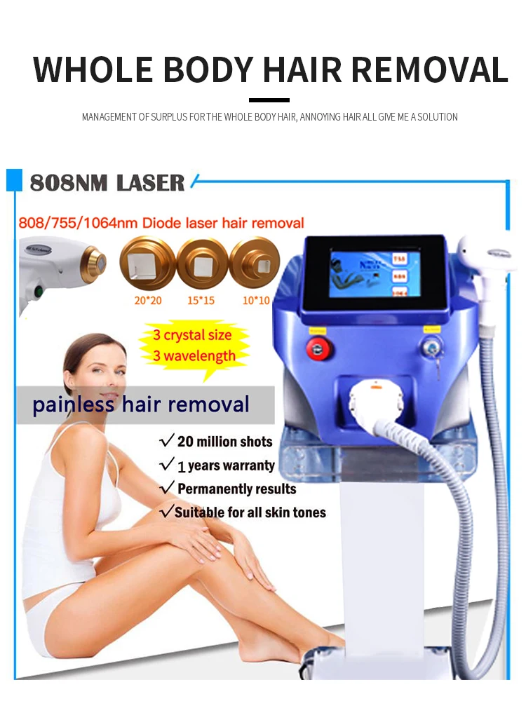 600W Painless Permanent 808nm Diode Laser Hair removal Machine in 755nm 808nm 1064nm 3 wavelength 20 Million Shots