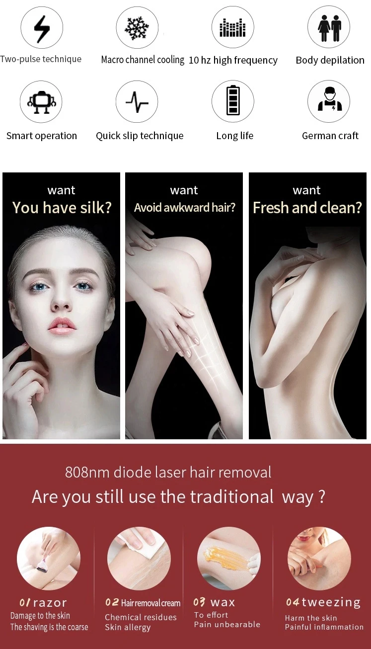 Combined 808nm for All Skin Type, All Hair Colors;