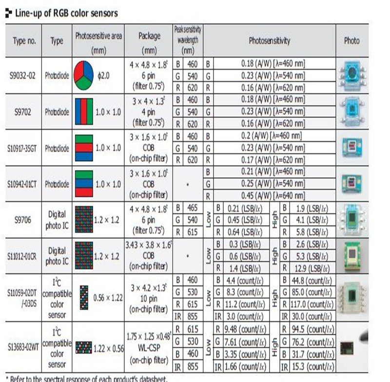 • Hamamatsu RGB Color Sensor S11059-02DT S9706 S9032-02 S10917 S11012