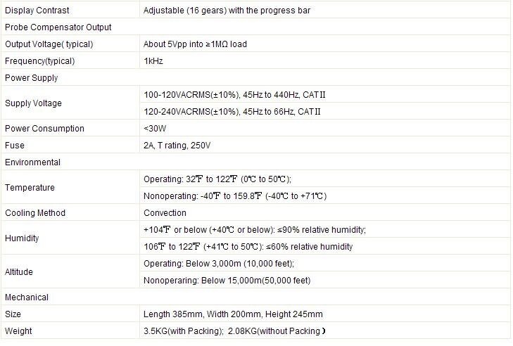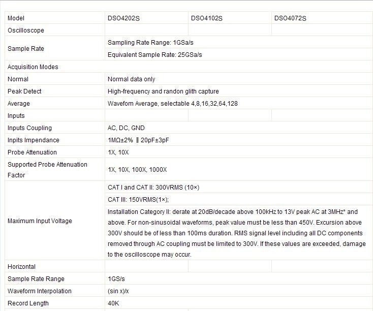 - Real Time Sampling Rate: 1GSa/S