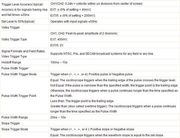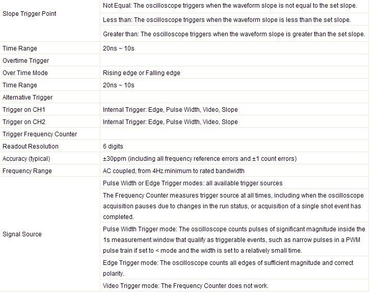 Powerful Trigger Function:Edge, Video, Pulse, Slope, Over time, Alternative;