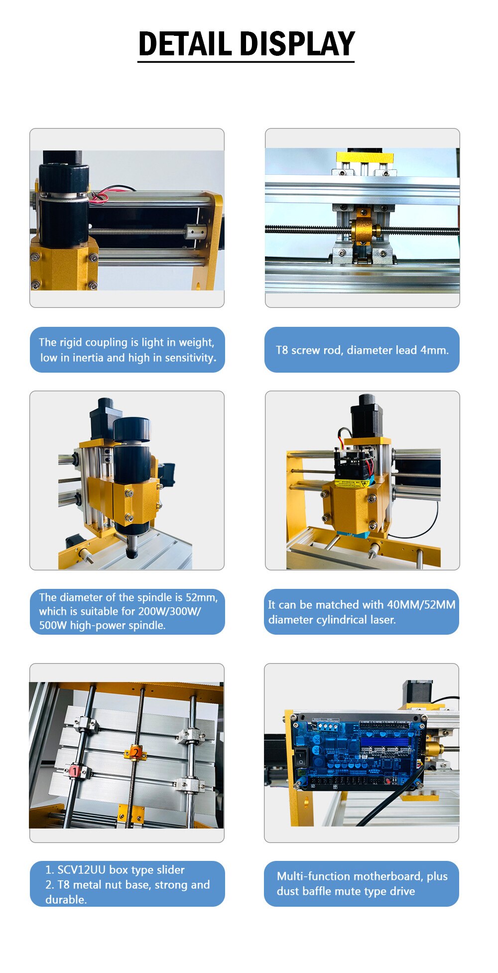 LY CNC 3018 Plus 300W/500W Desktop Wood CNC Router Engraver Kit 52MM Spindle Holder Nema17/23 Stepper Motors With Laser 5.5W 15W 30W Lift platform & Offline Panel optional