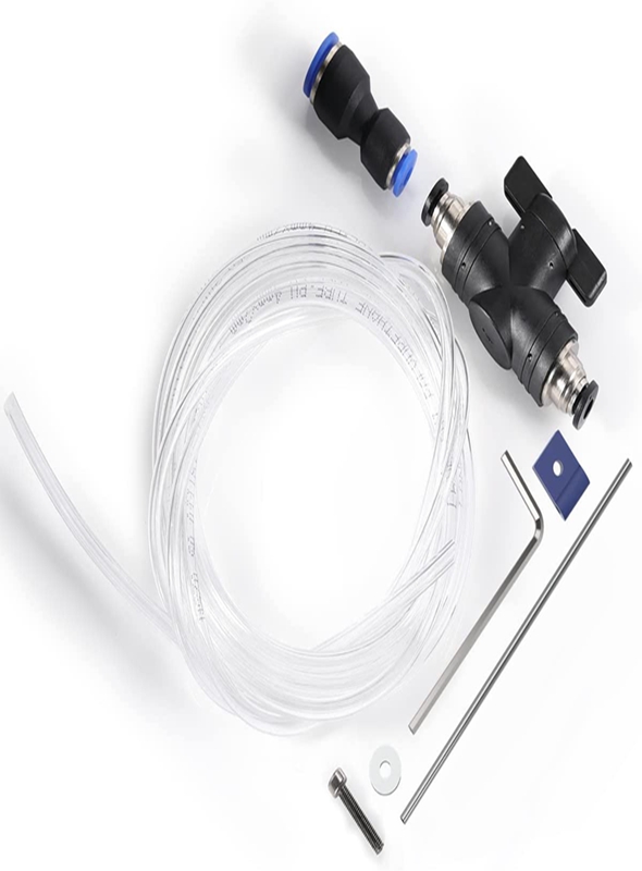 【Package List】Single screw fixing 3D mounting piece x1 (random color);M3 stainless steel gasket x1;M3x16 socket head cap screw x1; Stainless steel air pipe x1;2.5mm Allen key x1;Trachea 2m x1;Trachea adapter x1; Air valve manual switch x1;