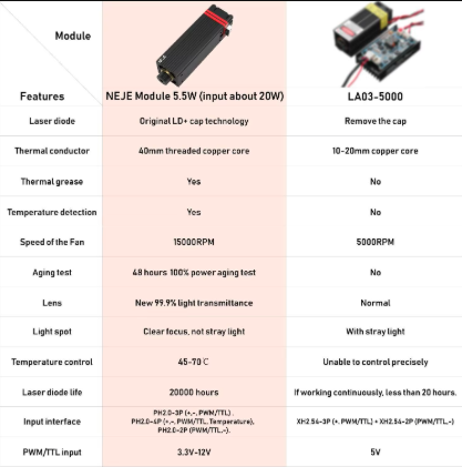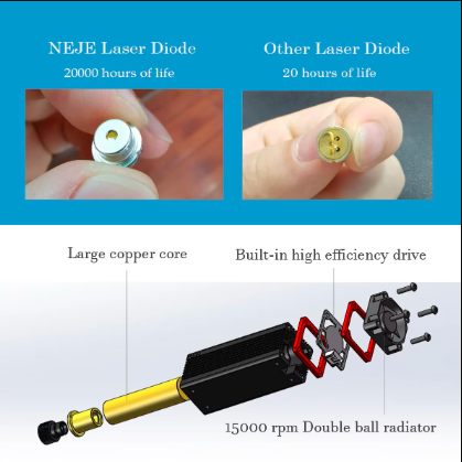 3. Built-in driver board, 40mm threaded copper core with thermal grease compound, Temperature sensor,NEJE factory 48 hours 100% power aging test, Ensure long time working!
