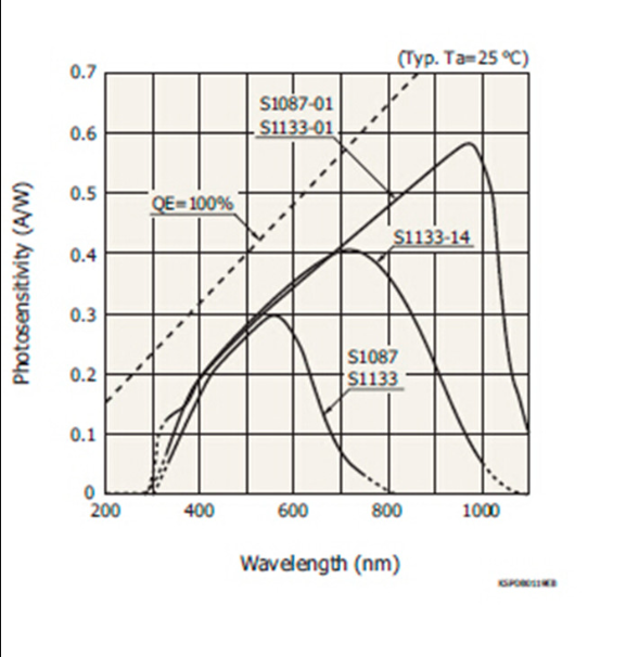 The S1087-01 is a ceramic package photodiode that offers low dark current. Ceramic package used is light-impervious, so no stray light can reach the photosensitive area from the side or backside. This allows reliable optical measurements in the visible to near infrared range, over a wide dynamic range from low light levels to high light levels.