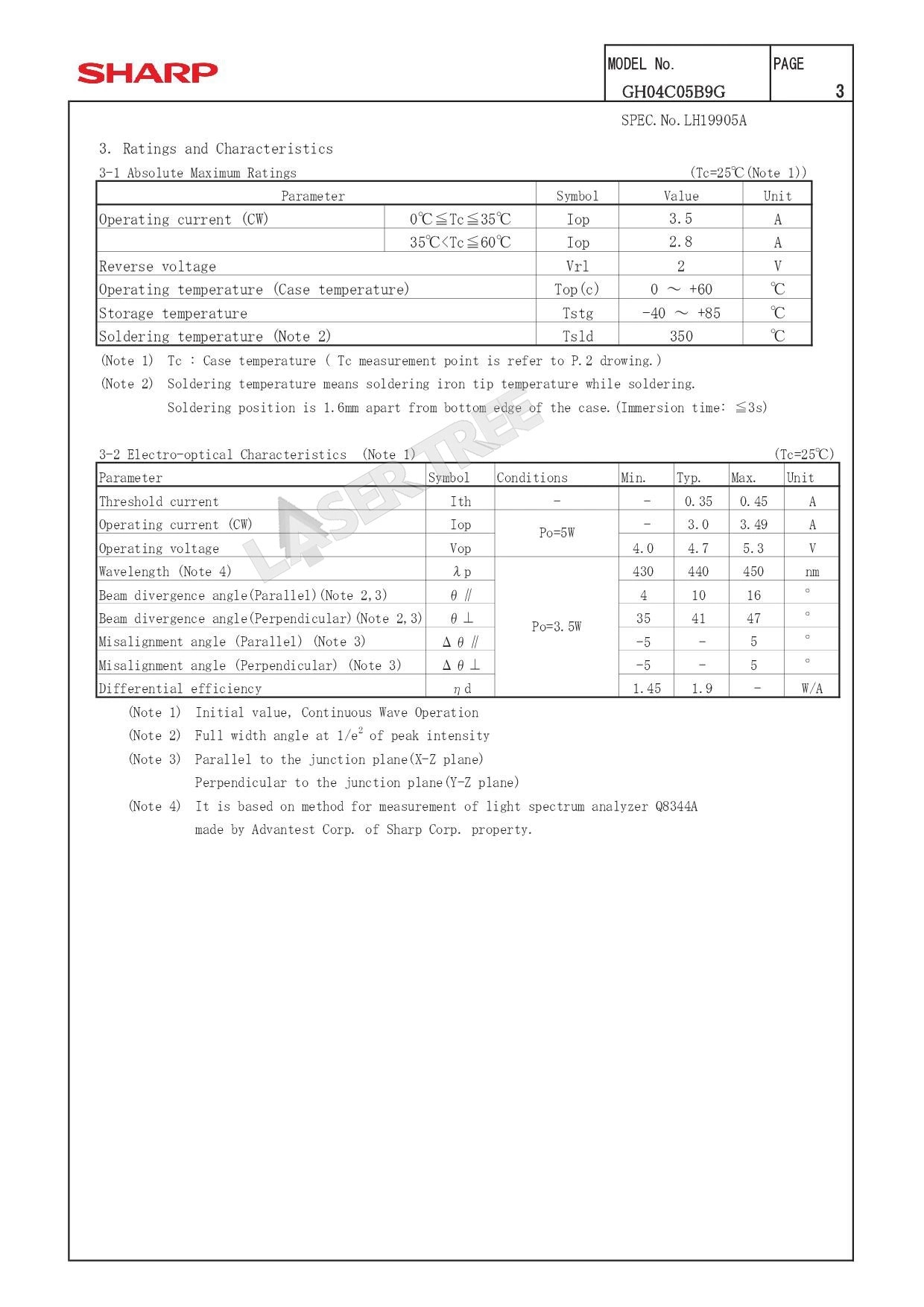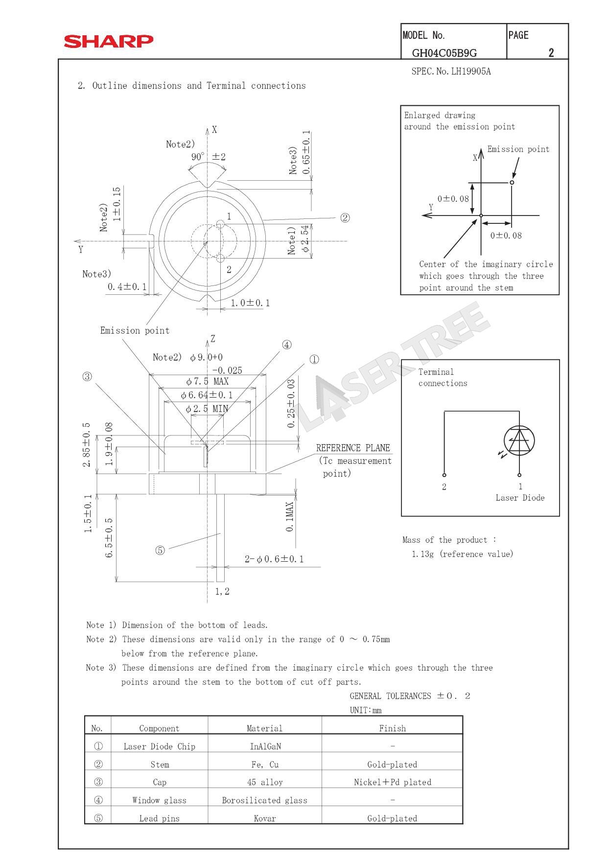 Sharp GH04C05B9G 440nm 5W 3.5W TO-5 9mm Blue Laser Diode