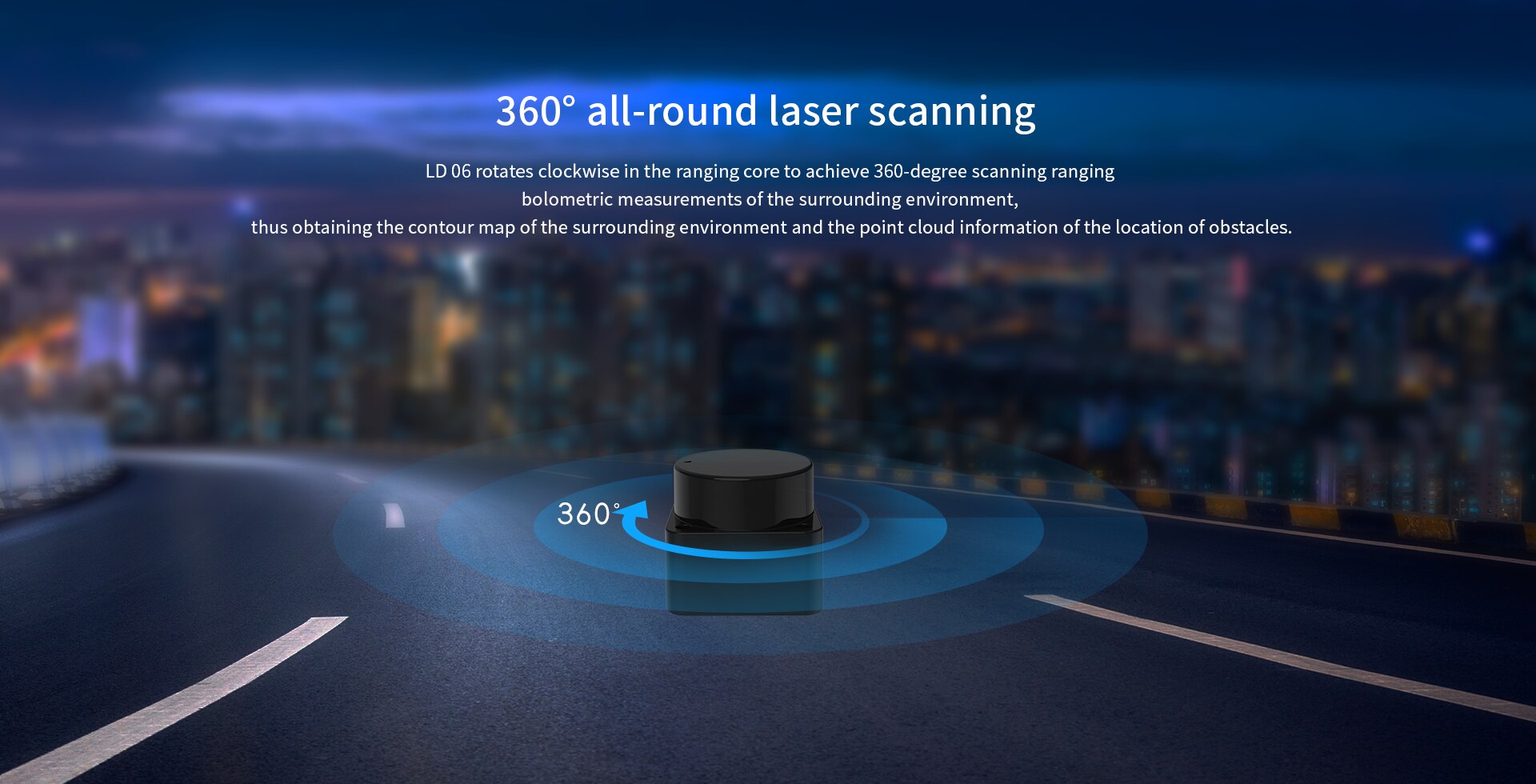 * 【IPX4 waterproof and dustproof】 LD06 adopts integrated interface design, compact structure design, network protocol for cloud data transmission, the whole machine is dustproof and waterproof to IPX4 level. LD06 laser module rotates in clockwise to achieve a 360°omni-directional scanning and measurement of the surrounding, for the mapping contour of the surrounding environment and the point cloud information of the location of obstacles.SPECIFICATIONS: