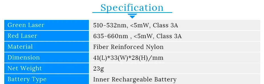 • Output Power: 1-5mW