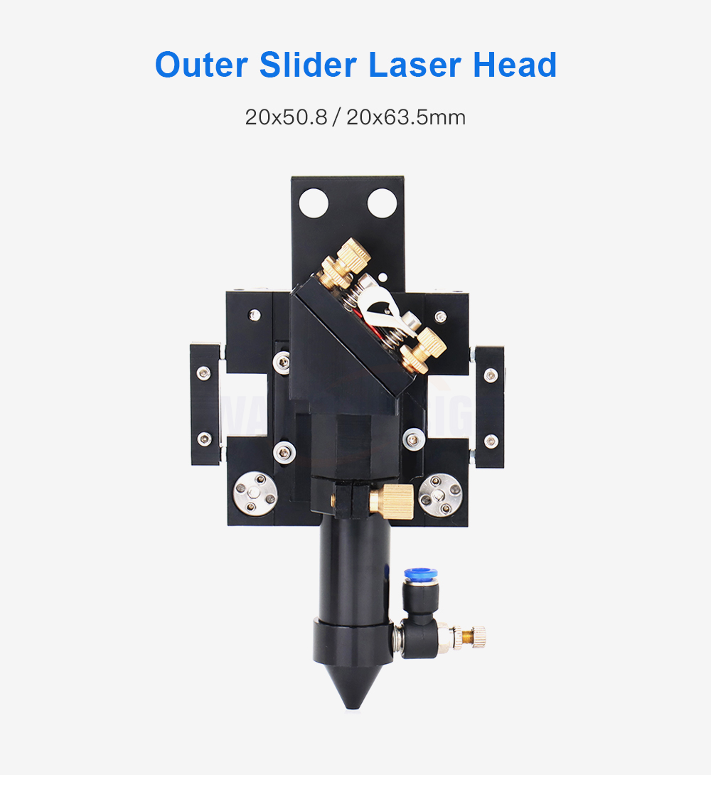 WaveTopSign CO2 Laser Head for Dia.20mm FL 50.8/63.5mm Lens D25mm Mirror Outer Slider Type with Air Nozzle
