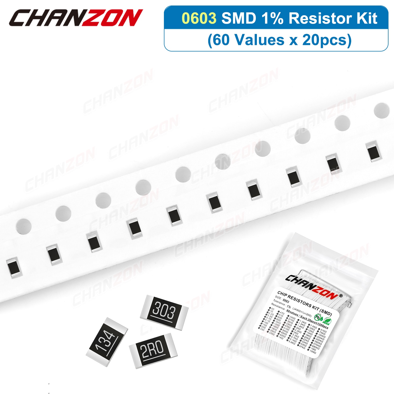1200 Pcs SMD 0603 Resistors Assorted Set (60 Values x 20Pcs) 0ohm – 10M Ohm 1/10 Watt 1% High Precision Film Chip Resistance Kit